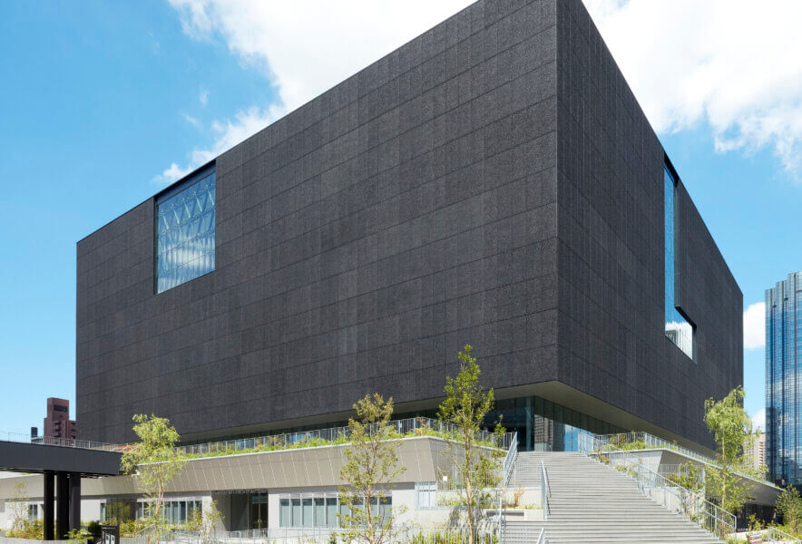 最寄り駅から歩いていくと、黒い外観が印象的な建物が見えてきます。